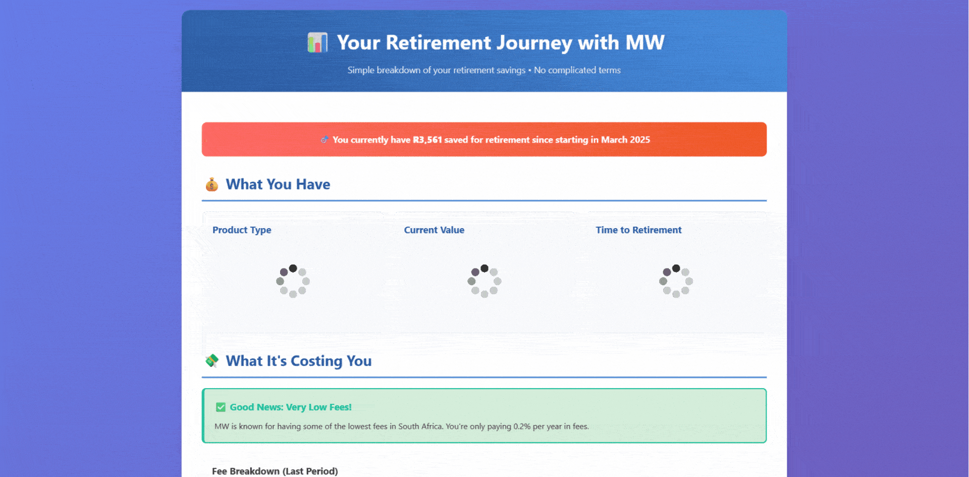 If you're unsure what your retirement products like RA or TFSA are really costing you every month and in the long term, this tool is for you.